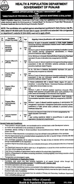 Health And Population Department Jobs, Islamabad, November 2025 Advertisement