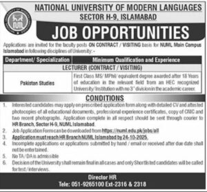 Candidates if you are seeking National Languages University Jobs In Islamabad October 2025 if yes. It would be best if you tried to complete read National Languages University job because you can easily apply for these vacancies Pakistan Studies.